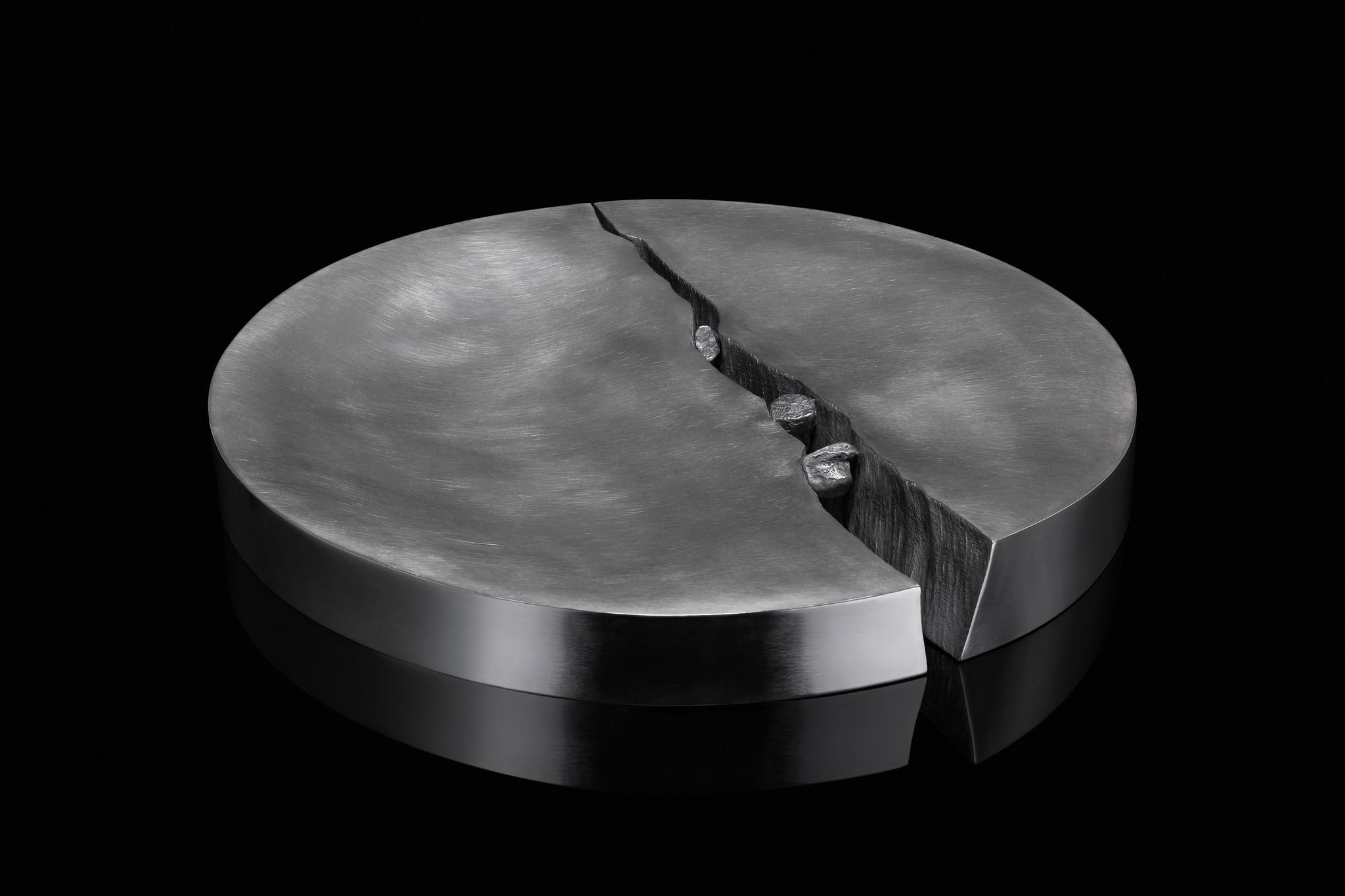 ‘Chockstones’, the beginning of a new body of work coming from my love of rocks (Lithophilia) and rock climbing. This piece is based on close observation of cracks and rocky crags, on a micro and macro scale. Chockstones stuck in cracks are the origin of modern climbing protection, as early adventurers threaded rope around stones stuck in cracks, and then began carrying a pocketful of useful pebbles to place.